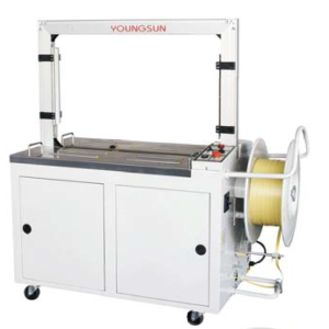 Máy đóng đai tự động KZW-8060D tích hợp dễ dàng với dây chuyển đóng gói (sau máy dán thùng, trước cánh tay robot xếp hàng lên pallet.