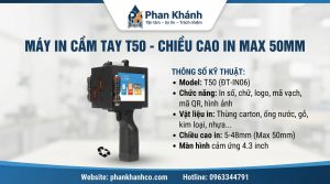Trong kỷ nguyên sản xuất hiện đại, việc đánh dấu mã hàng, in hạn sử dụng (NSX/HSD) hay in logo thương hiệu lên sản phẩm yêu cầu sự linh hoạt và tính thẩm mỹ cao. Công ty Phan Khánh tự hào giới thiệu dòng Máy in cầm tay T50 (ĐT-IN06) – một thiết bị đột phá với khả năng in khổ lớn lên đến 50mm, đáp ứng mọi nhu cầu in ấn trên đa dạng bề mặt vật liệu.